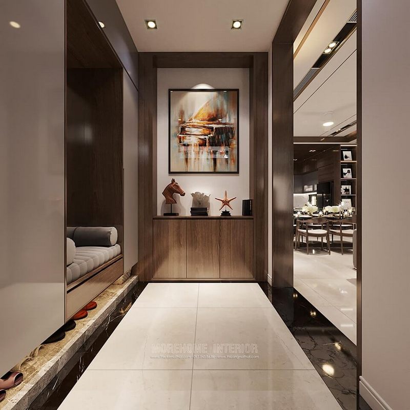 Mẫu tủ trang trí tiền sảnh biệt thự bằng gỗ óc chó tự nhiên nhập khẩu cao cấp